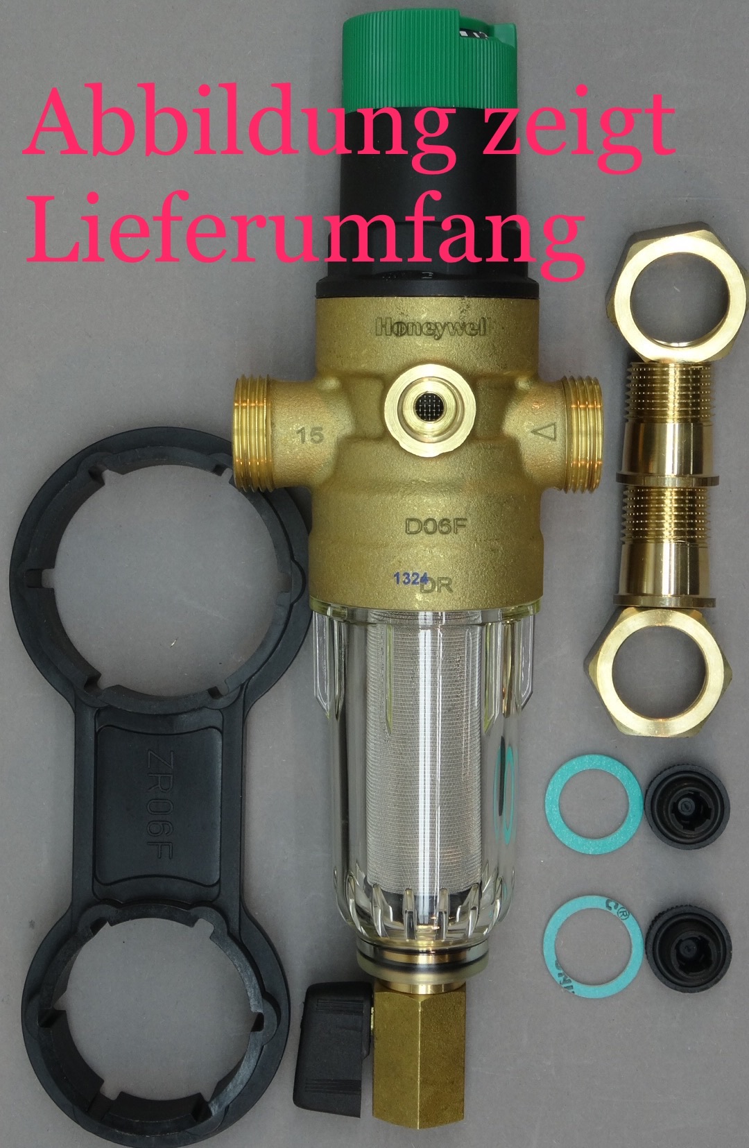 - Lieferumfang: Druckminderer, Feinsieb (0,105mm (unten) / 0,135mm (oben)), Verschlußstopfen, Dichtringe, Verschraubung, Schlüssel