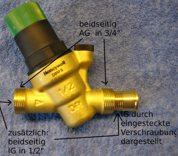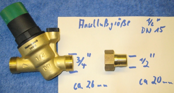 - Gewindegrösse am Gehäuse des Druckminderers (AG): 3/4"