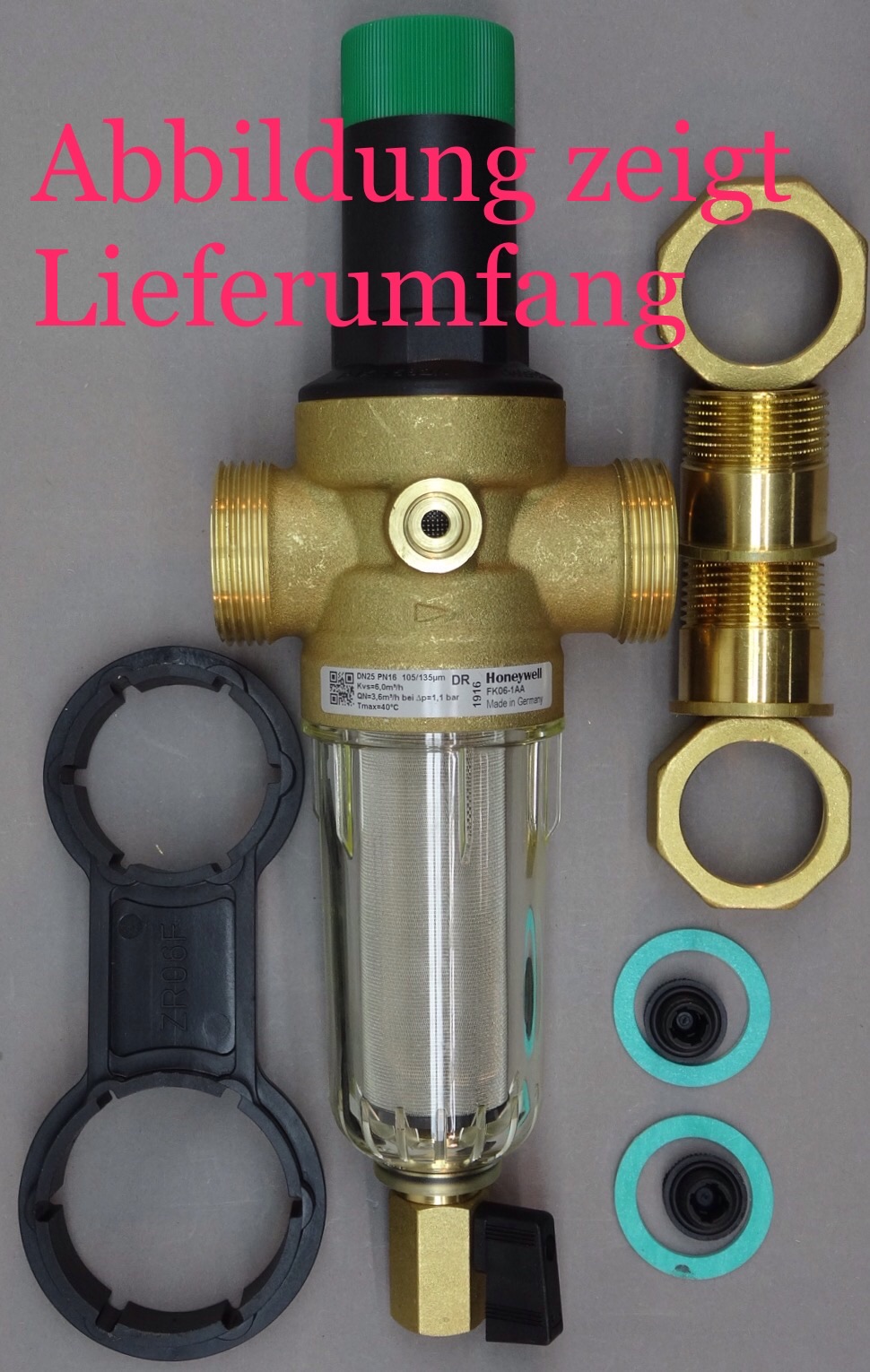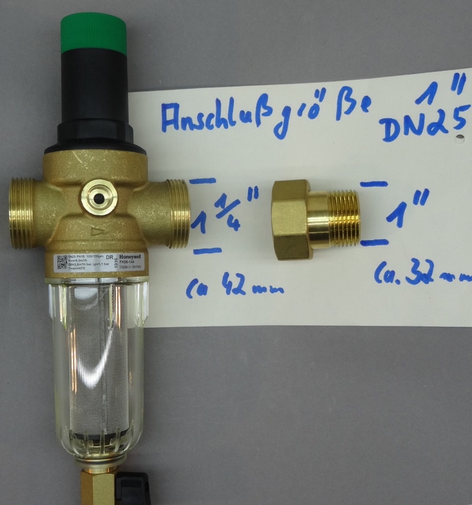 Bitte beachten Sie insbesondere, dass die Gewindegröße der Anschlußverschraubung 1" beträgt, das Gewinde der Filterkombination selbst jedoch 1 1/4".