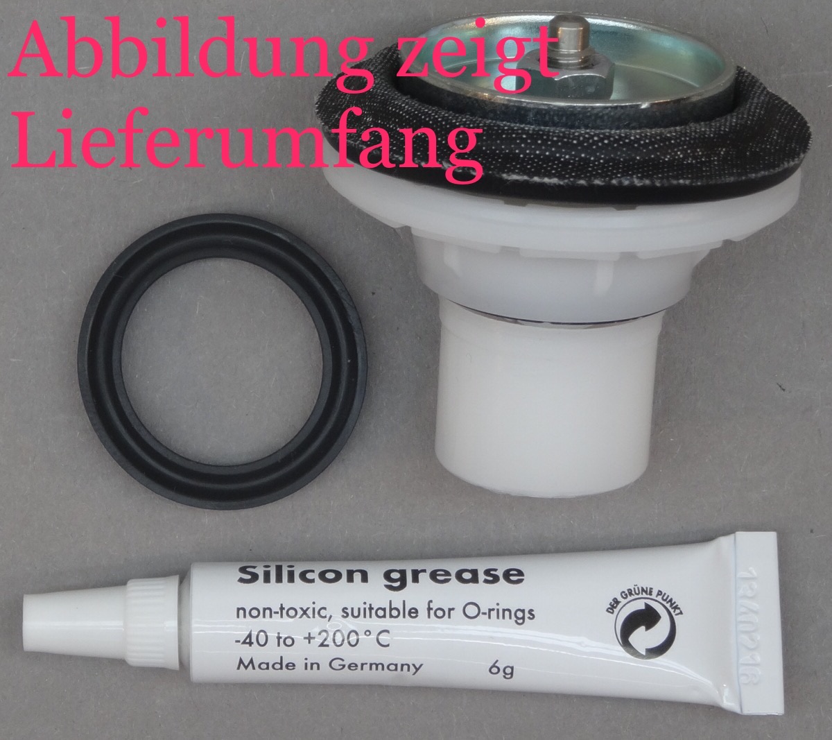 legen wir Ihnen eine Tube Silikonfett (6g / 7ml) bei, um eine lange Lebensdauer und sichere Funktion zu gewährleisten