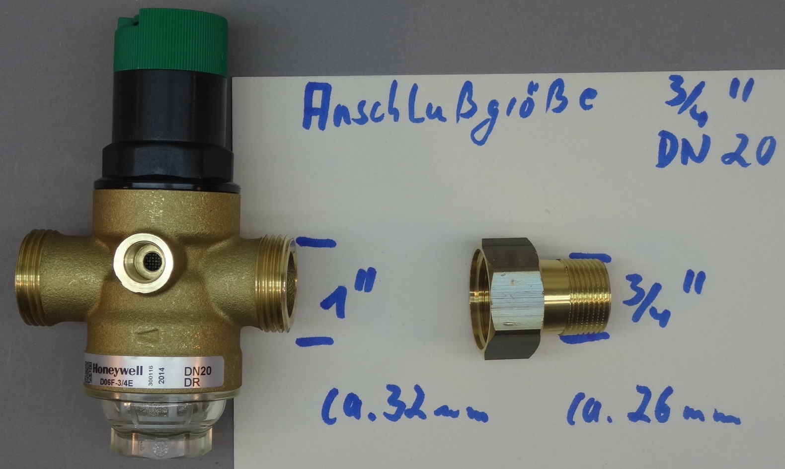 - Gewindegrösse am Gehäuse des Druckminderers: 1"