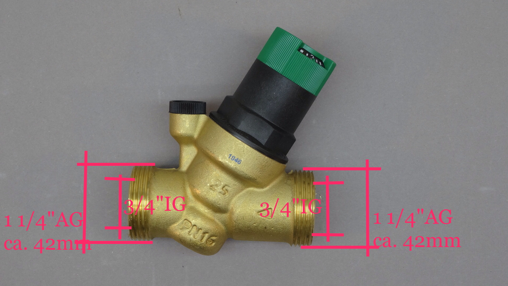 - Gewindegrösse am Gehäuse des Druckminderers (AG): 1 1/4"